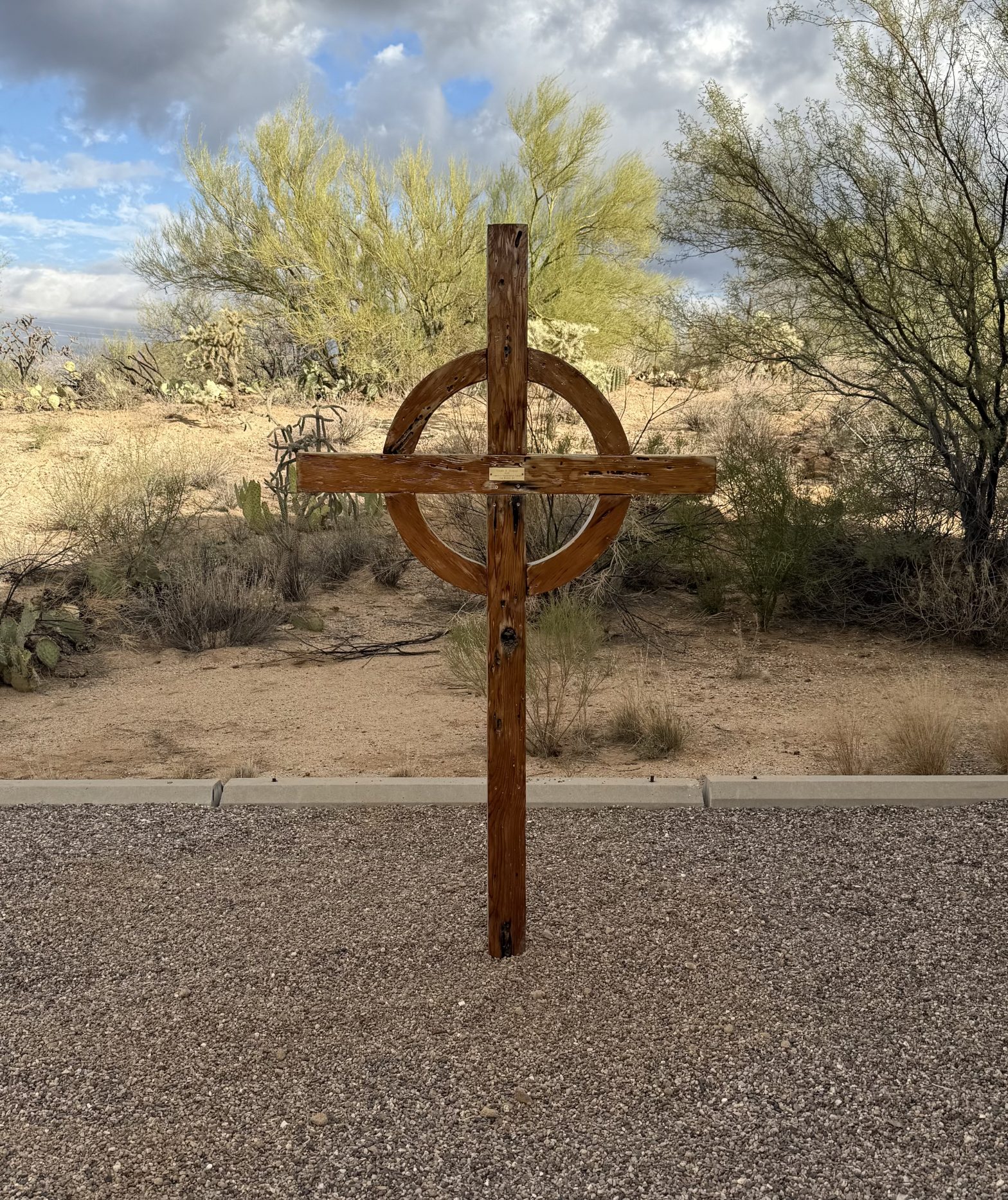 The wooden Celtic Cross from Community Presbyterian Church now is positioned on the campus of Mountain Shadows Presbyterian Church. The Cross was donated in 2025 by Frank R. Howard on behalf of Community Presbyterian Church. View the names included on the Tree of Life. Read about the closing of the church after 68 years of… Continue reading Community Presbyterian Church of San Manuel